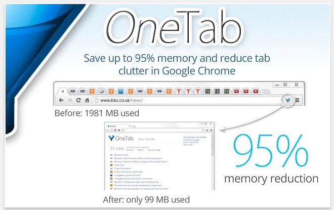 Kurz gesagt, viele offen Tabs und wenig Arbeitsspeicher behindern sehr stark die Produktivität. OneTab bringt deine offenen Tabs in eine List, du kannst gleichzeitig diese Liste mit Personen teilen und auf dein Smartphone und Tablet exportieren.