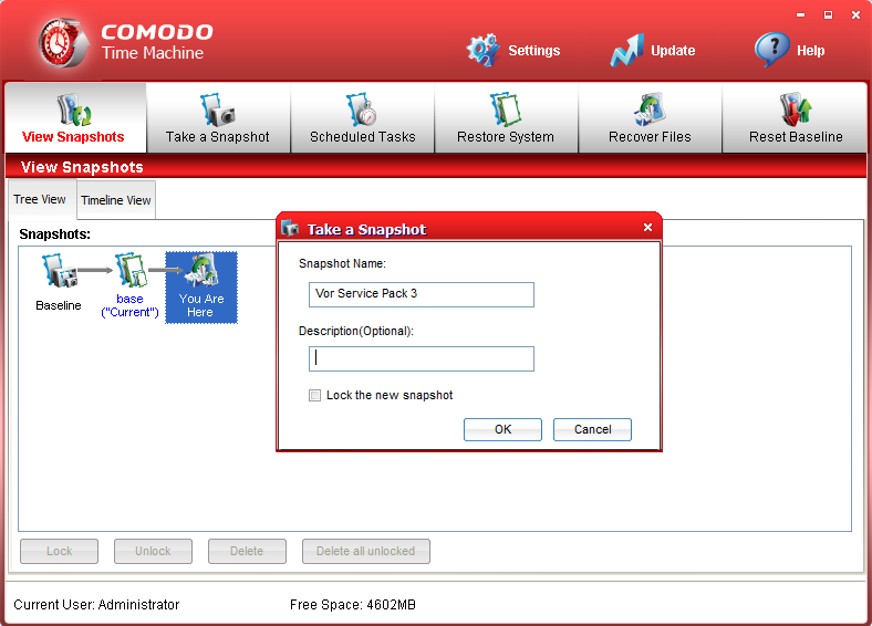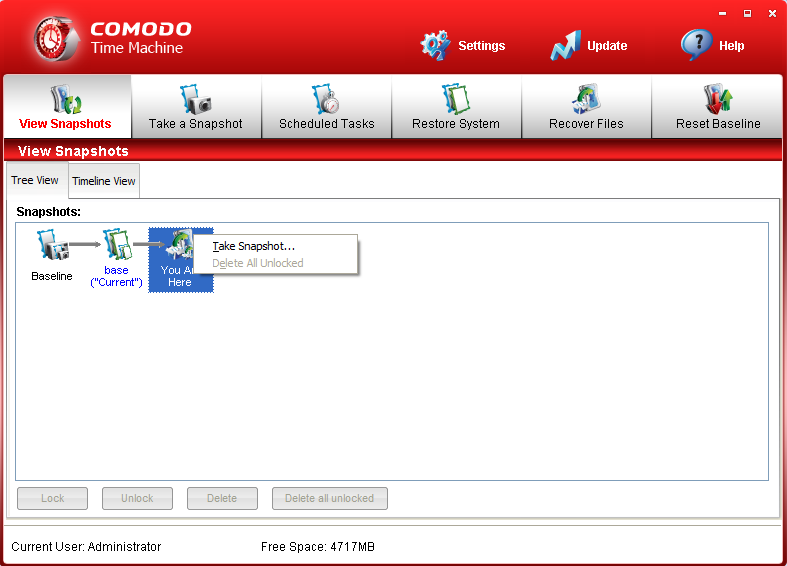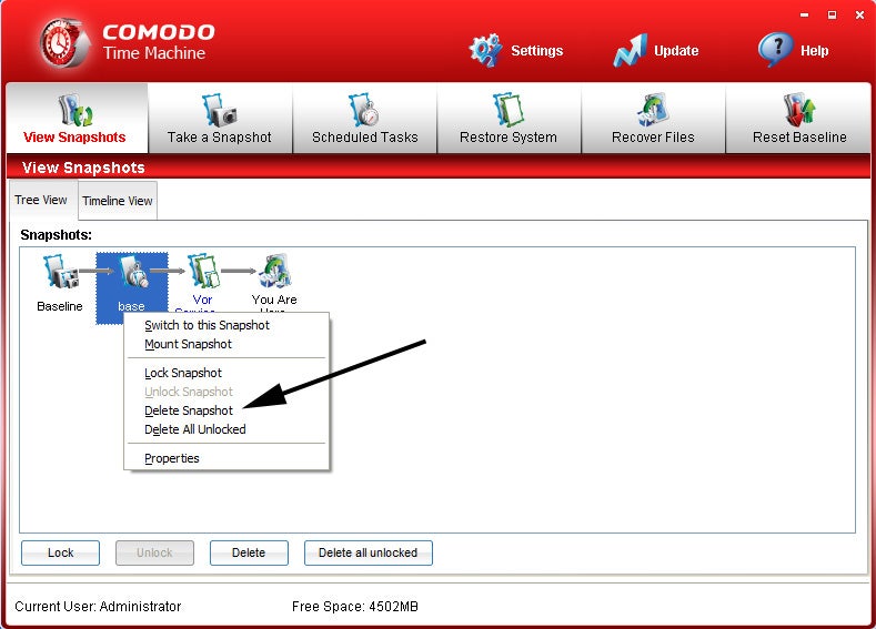 Mit einem rechten Mausklick auf You Are Here und Take Snapshot kann man den aktuellen Zustand als neuen Sicherungspunkt speichern.