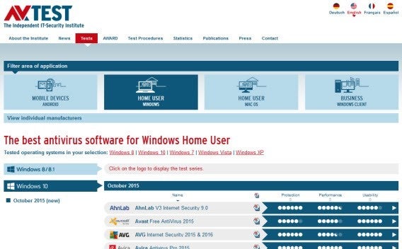 AV-TEST ist ein Veteran in der Durchführung von unabhängigen Tests. Ein Beweis dafür sind die fehlenden Angriffe ähnlich wie bei AV-Comparatives. Wieder haben wir Daten von Oktober 2015 verwendet. Windows-TEST bietet auch Leistungsdaten hinsichtlich der Geschwindigkeit, bei der Operationen ausgeführt werden, an.