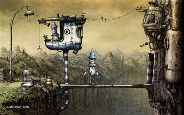 Machinarium (PC Download/Mac Download) bringt ein detailverliebtes, handgezeichnetes Point&Click-Adventure auf den Rechner. In dem Abenteuerspiel kombiniert man in Machinarium gefundene Gegenstände mit der Umwelt, um sich den Weg in den nächsten Bildschirm freizuspielen. Sprache an sich gibt es in Machinarium nicht. Ab und an erscheinen über verschiedenen Charakteren Gedankenblasen, die zum einen die Geschichte erzählen, zum anderen hilfreiche Tipps geben. Kommt man einmal gar nicht weiter, kann man sich einmal pro Level einen Extra-Tipp geben lassen. Musik und Soundeffekte tragen zur Atmosphäre der Roboterwelt bei.