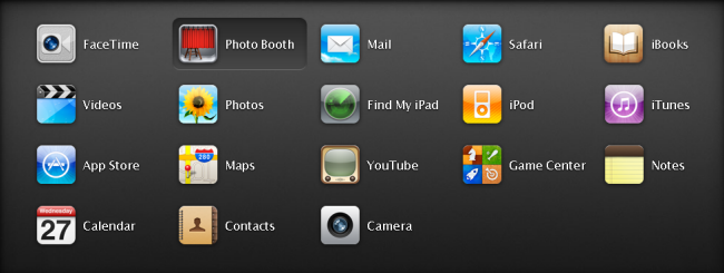 Viele nützliche Apps sind bereits auf dem iPad 2 vorinstalliert (siehe Grafik). Neben dem obligatorischen Kalender, Mail-Programm oder Apples Webbrowser Safari zählen Apples Videochat FaceTime oder Photo Booth zum effektvollen Animieren von Bildern zu den Highlights.