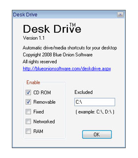 Unter Windows hilft da netterweise die kostenlose Software DeskDrive weiter. DeskDrive überwacht im Hintergrund ob man eine CD einlegt oder einen USB-Datenträger anschließt. Automatisch erstellt die Software – wie man es in richtigen Betriebssystemen gewohnt ist – die Datenträger-Symbol auf dem Desktop.