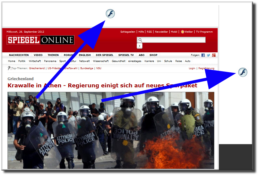 Durch einen gezielten Klick kann man die Inhalte manuell nachladen und beschränkt dadurch den Einsatz von Flash auf ein Minimum. Bei Werbung kann man getrost darauf verzichten. Setzt man parallel den Werbeblocker AdBlock Plus ein, wird die Werbung sogar komplett herausgefiltert. Mozilla Firefox läuft so spürbar schneller und stabiler.