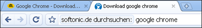 Optisch präsentiert sich Google Chrome äußerst schlicht um nicht zu sagen minimalistisch. Statt der Menüleiste befindet sich die Tab-Leiste am oberen Bildschirmrand. Die Menüs verstecken sich hinter zwei Buttons am rechten Rand der Adresszeile. Hier gibt man die gewünschten Webseitenadressen ein. Die Adresszeile erfüllt aber noch mehr Funktionen. Gibt man dort einen Begriff ein, so sucht der Browser bei Google danach. Schon beim Tippen schlägt Google Chrome Webseiten vor. Dabei klappt ein Drop-Down-Menü auf, das eine Mischung aus Webseitenverlauf und Google-Vorschlägen anzeigt. Auch Suchmaschinen von Webseiten kann Chrome von sich aus nutzen. Gibt man beispielsweise softonic.de ein und drückt die Tabulatortaste, nutzt der Browser die Softonic-Suche.