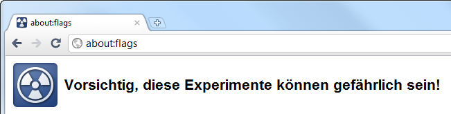 Zunächst öffnet man durch Eingabe von about:flags in der Adresszeile die experimentellen Optionen.