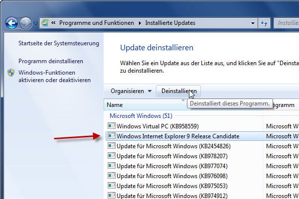 Internet Explorer 9 deinstallieren