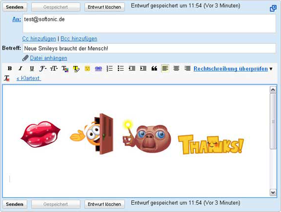 Crawler Smileys bereichert Text-Nachrichten mit Tausenden von Animationen und Bildern. Die Freeware fügt sich als kleine Leiste in die Sofortnachrichten-Programme ICQ, Windows Live Messenger, AIM, Google Talk und Yahoo! Messenger ein und funktioniert auch in browserbasierten E-Mail-Diensten wie Googlemail oder Hotmail. Per Mausklick fügt man einen animierten Gesichtsausdruck aus der Auswahl ein.