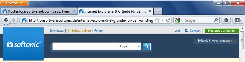 Auf den ersten Blick fällt bei Mozilla Firefox 4 (Win/Mac) die deutlich überarbeitete Oberfläche auf. Tabs stellt der Browser über der Adresszeile dar und bei Windows 7 und Vista ersetzt der in den Fensterrahmen integrierte rote Firefox-Knopf die alte Menüleiste. Die reduzierten Bedienelemente sorgen auf elegante Art für mehr Überblick und bringen Webseiten deutlich platzsparender auf den Bildschirm. Gerade Netbook-Nutzer mit kleineren Displays dürften sich darüber freuen.