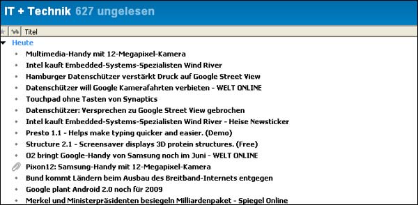 Damit steht dem Mediennutzer und Newsjunkie die gesamte Informationsfülle des Internets zur Verfügung – ganz ohne Stress. Dadurch, dass die Feeds auf dem eigenen Rechner landen, kann man die News auch während einer Pause oder einer Zugfahrt in Ruhe lesen, ohne Zeit zu verlieren.