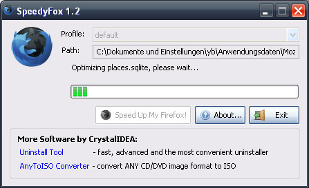Firefox verwendet die Programmbibliothek SQLite, um Daten hinsichtlich Navigation, Browser-History, Präferenzen, etc. zu speichern. Im Laufe der Zeit wächst die Datenmenge an und verlangsamt den Browser. SpeedyFox bringt die Daten in eine kompaktere Form, ohne Informationen zu verlieren.