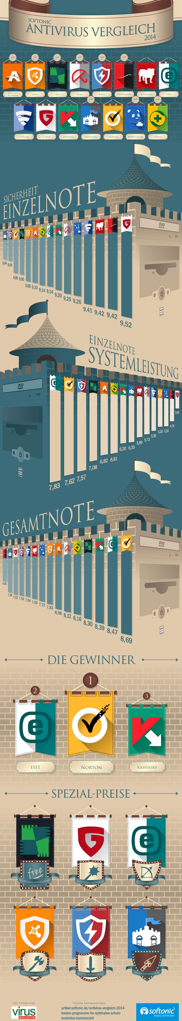 Antiviren nach Leistung von links nach rechts geordnet. Je höher die Punkte, desto besser.
