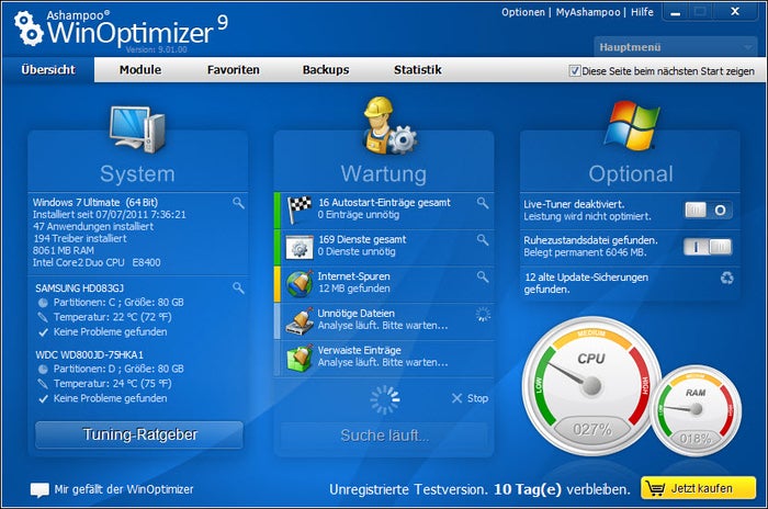 Mit Ashampoo WinOptimizer säubert man den gesamten PC, räumt Speicherplatz frei, optimiert das System, behebt Fehler und steigert die Arbeitsleistung des Rechners.