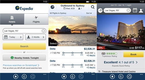 Mit der Expedia-App für Windows Phone durchstöbern Sie eines der populärsten Reiseportale nach Flügen und Hotels. Expedia wurde einst von Microsoft gegründet und ist als Veteran unter den Suchmaschinen an alle wichtigen Buchungssysteme angeschlossen. Mit etwas Glück finden Sie hier den billigsten Preis, da Expedia von zahlreichen Firmen Rabatte eingeräumt bekommt. Von der Schwesterfima Tripadvisor (siehe unten) zeigt die Expedia App für Windows Phone zudem Gästebewertungen der Unterkünfte an.