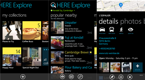 Mit HERE Explore für Windows Phone finden Sie alles Sehenswerte in Ihrer näheren Umgebung. Wie Yelp oder Tripadvisor zeigt die App auch Empfehlungen für Restaurants und Bars an. Zudem finden Sie auch manche Sehenswürdigkeiten, die in den anderen Apps fehlen. Statt auf einem Verzeichnis mit Suchfunktion legt HERE Explore den Fokus auf Ihren direkten Umkreis. Über GPS ermittelt die App den Standort und zeigt alles wichtige in Ihrer Nähe an.