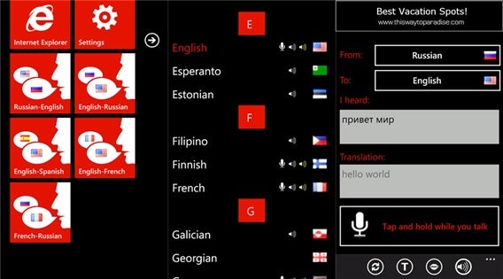 Ob Sie ein Sprachen-Multitalent sind oder nicht. Ein Übersetzer gehört auf Reisen einfach dazu. Bing Translator ist auf Windows Phone der Standard-Übersetzer. Die App unterstützt quasi alle Sprachen bis hin zu Chinesisch. Sie wählen die gewünschte Kombination aus und Bing übersetzt den gewünschten Text per Fingertipp.