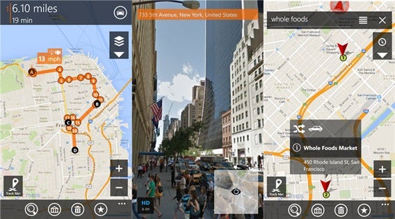 Falls Sie trotzdem auf Google Maps nicht verzichten wollen, können Sie die inoffizielle App gMaps oder gMaps+ nutzen. Beide Apps bieten eine durchdachte Oberfläche und bringen fast das volle Leistungsspektrum auf Ihr Windows Phone Gerät. Auch Street View funktioniert so unter Windows Phone tadellos. Über einblendbare Ebenen können Sie eine Satellitenkarte, Fahrradwege oder Wetterinfos anzeigen.