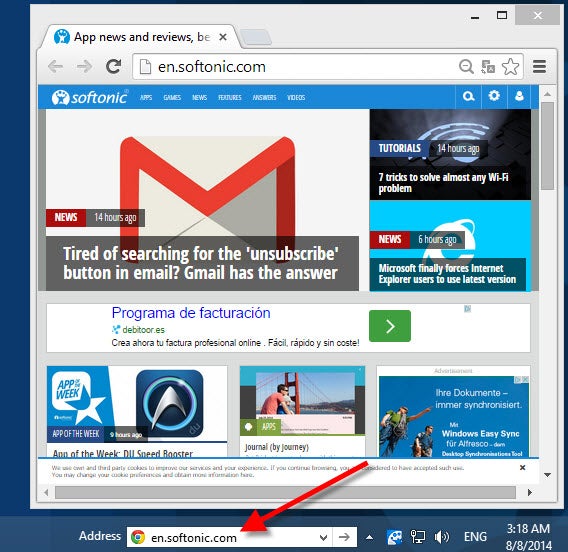 Seitenadressen wie softonic.de oder artikel.softonic.de können Sie direkt durch Eingabe der Zeichenkette im Standardbrowser öffnen.