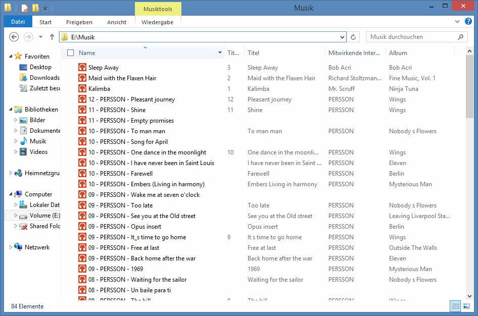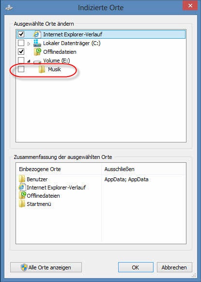 Ein Beispiel: Ihre Musikdateien sind nicht Teil der Musik-Bibliothek von Windows, sondern liegen auf einem anderen Laufwerk im Ordner E:/Musik. Dieser wird aber nicht automatisch indexiert. Seit Windows Vista hat sich daran nichts geändert. Auch unter Windows 8 ist das noch so.