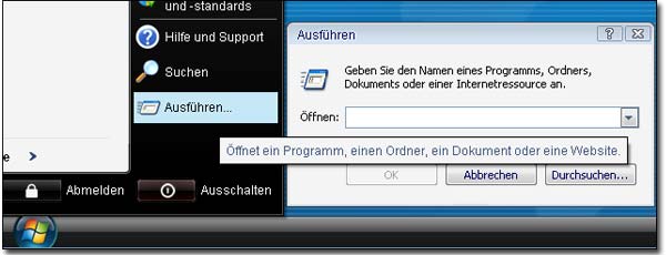 Meist ruft man die Konsole über Ausführen des Befehls cmd (Abkürzung für command) in der Windows-Startleiste auf. Damit öffnet man das DOS-Eingabefenster und tippt Steuerbefehle für das Betriebssystem oder für bestimmte Systemprogramme ein.