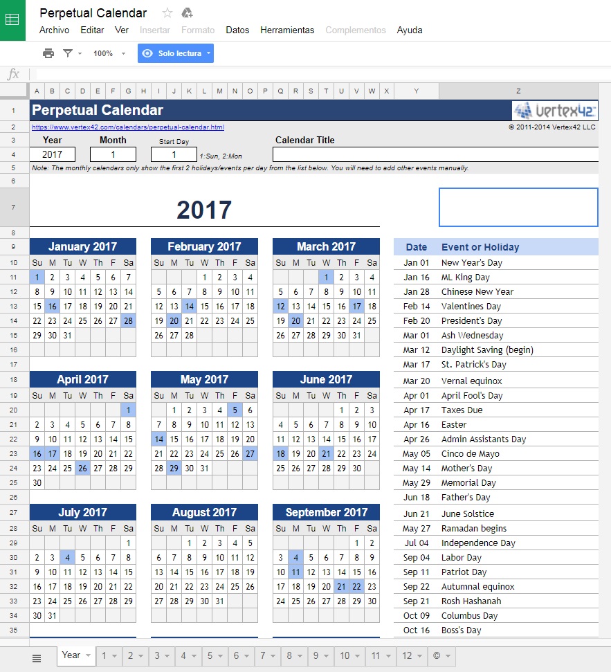 Complex: We call this one “complex,” but it’s not really. With this calendar, you have all the previous features, but with some of the most important events of the year added. Obviously, you can change them to put in your region’s holidays.