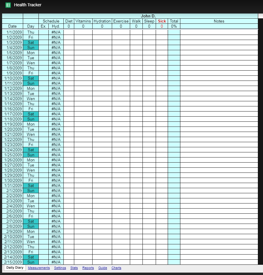 Health and weight: We’ll end the list with a template that works reasonably well if you want to track weight loss, sleeping hours, vitamins, etc. Give it a shot if you need to monitor your health.