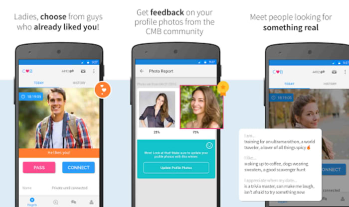 Icebreaker questions. Can upload Facebook photos from the app. Receive daily matches. Matches based on preferences