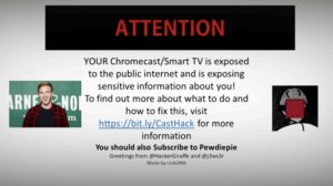 Thousands of Chromecast owners were shown a pop-up that warned them of their weakness. The message (shown below) highlighted the users’ misconfigured routers as the culprits and warned that other hackers would also be able to exploit the weakness and break in, too. They also asked users to subscribe to and follow YouTube personality PewDiePie’s channels.