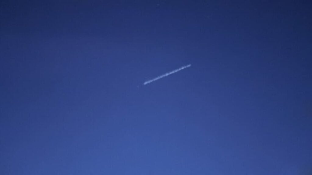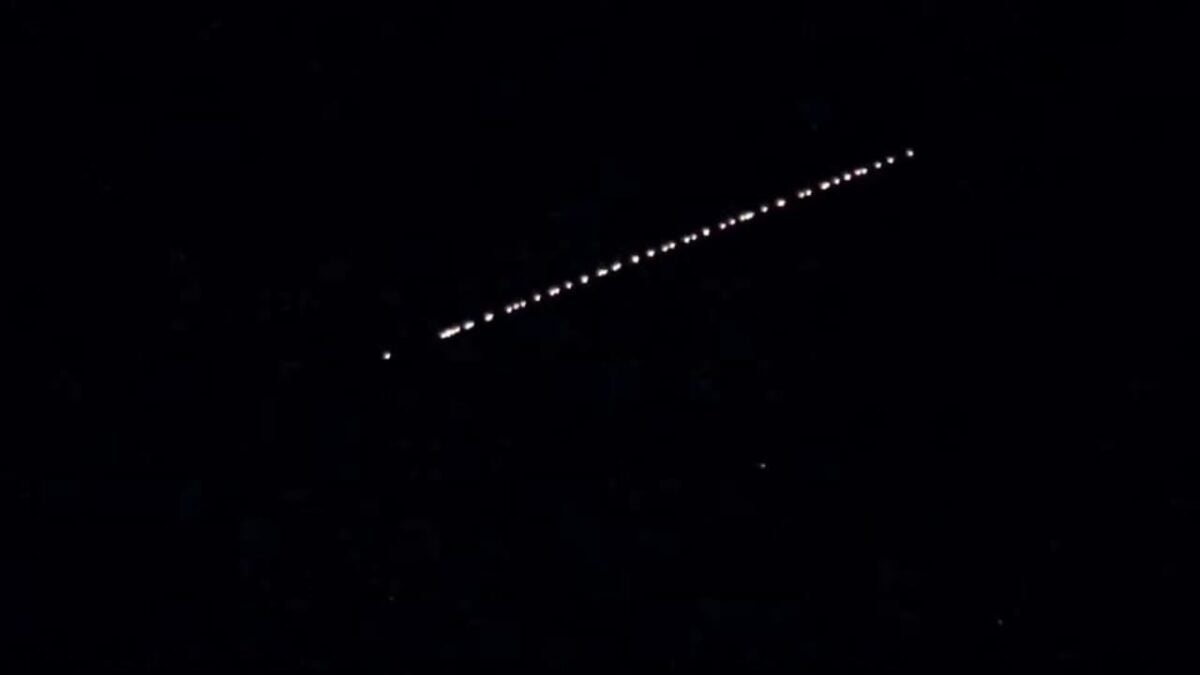 This line of bright dots in the night sky was actually satellites. Yes, satellites, you read that right. Specifically, they were Starlink satellites from SpaceX. In addition to conducting rocket tests, Elon Musk‘s aerospace company also launches batches of Starlink satellites into space every few days using their Falcon 9 rockets.