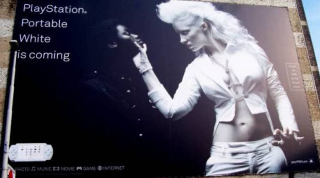 During the ’90s, video game advertisements were, in hindsight, a collection of sexist, racist, and transphobic absurdities, but they were products of their time. By the time the PSP was released, Sony knew that the rules of the game had changed, and controversial ads did more harm than good. And honestly, I believe that with this billboard, they simply wanted to announce that the console would now be available in white color. But…