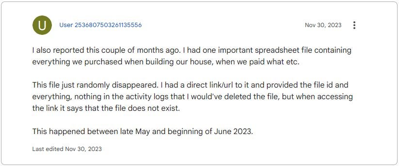 The issue here is that this approach negatively affects Google itself because user reports could actually assist in a quicker resolution of the problem. Moreover, Google’s published solution seems to have complicated matters for some users, with claims that Drive completely erased their files, leaving no chance for recovery. Will Google take a long time to address this serious problem? It’s hard to say, but the current handling doesn’t bode well for a swift resolution.