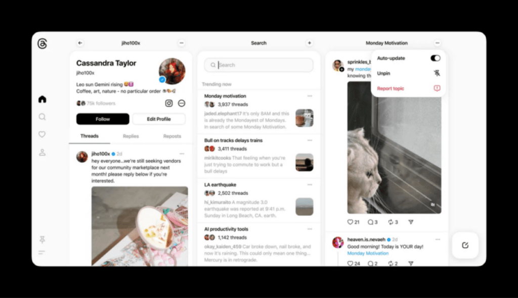 “If you are part of the test, you can keep things simple with a single feed or add separate columns for your favorite searches, tags, accounts, saved posts, and notifications,” explained Meta spokesperson Seine Kim, to The Verge. In addition, these columns can be configured to “automatically update in real time“, promising a much more dynamic and tailored experience to users’ needs.