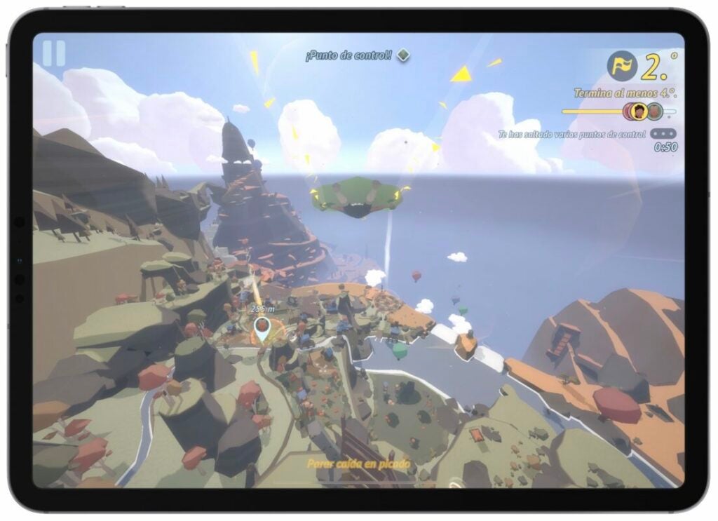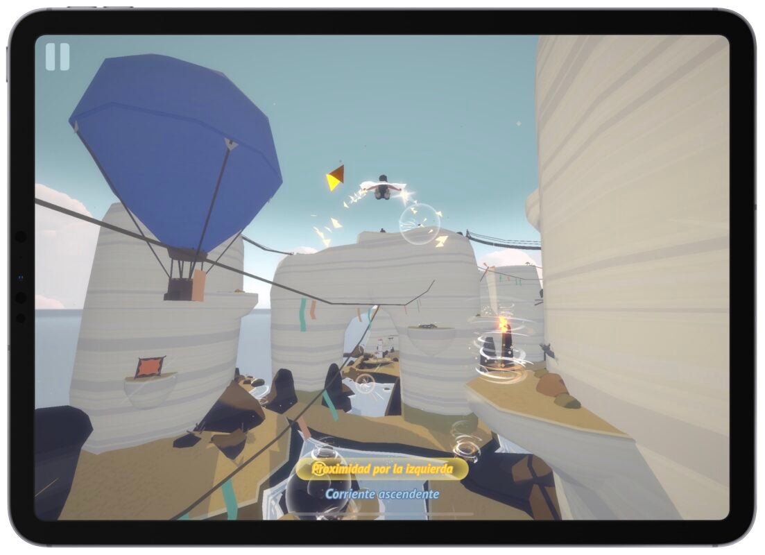 And it makes sense from the tutorial. Something to which, according to what Ryan Cash himself, CEO of Snowman, told us, they spent a lot of time. Explaining the controls in person is as easy as raising your hands, but doing it on a screen is another story. Here the game places us in a safe environment, in the middle of the sky, so that, individually, we learn the dynamics of it. First the horizontal movement, then the vertical and then the tricks that combine both. Being ready, we descend from the clouds and land in the new environment of the game.