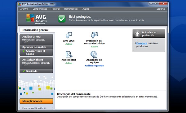 En una de las interfaces más agradables de su categoría, AVG Free reúne un escudo antivirus en tiempo real, uno anti-rootkit, un escudo de correo electrónico y un analizador de equipos, una función de rendimiento poco habitual en productos de este tipo. A eso hay que añadir >strong>LinkScanner, uno de los mejores escáneres de enlaces.