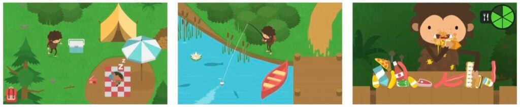 Sneaky Sasquatch: en este título, jugamos como Sasquatch, un divertido y amigable animalillo salvaje que vive en el bosque. Debemos ayudar a Sasquatch a sobrevivir en el bosque, recolectando comida y evitando a los humanos —aunque colarse en su campamiento es de lo más divertido—. El diseño gráfico es simple, pero atractivo y la dinámica es realmente variada con pequeños minijuegos dentro del contexto global.
