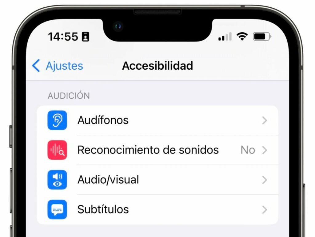 - Reconocimiento de sonidos: con lo que el iPhone es capaz de avisarnos de qué ocurre en nuestro alrededor. Útil para, por ejemplo, saber que la lavadora ha terminado de lavar.