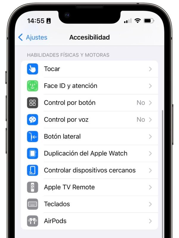En este apartado también podemos configurar cómo se comporta el botón lateral del iPhone, el teclado del teléfono e incluso cómo se interactúa con los AirPods una vez están estos conectados.