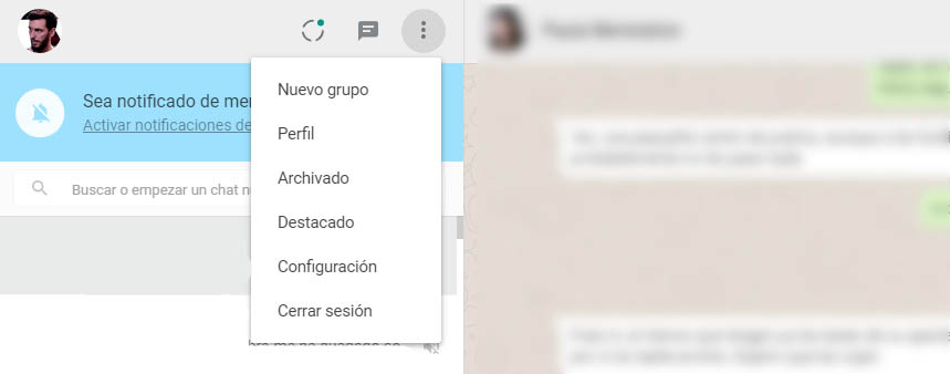 Para ello, sólo hay que pulsar sobre el icono de los tres puntos que abre el menú de opciones y seleccionar “Configuración”. Una vez dentro, la primera casilla no deja lugar a dudas: “Notificaciones”. Entra y desactiva los sonidos y las alertas de escritorio; de esta manera, ya no te volverá a aparecer nada en pantalla.