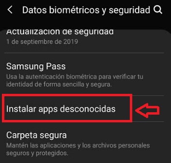 De forma predeterminada los dispositivos Android tienen desactivada la opción de abrir e instalar aplicaciones a través de archivos APK. Para activarla simplemente accede a los ajustes de tu móvil y pulsa en la opción “Datos biométricos o seguridad”. Dependiendo de tu versión de Android o modelo de móvil, puede que esta opción se llame simplemente “Seguridad”.
