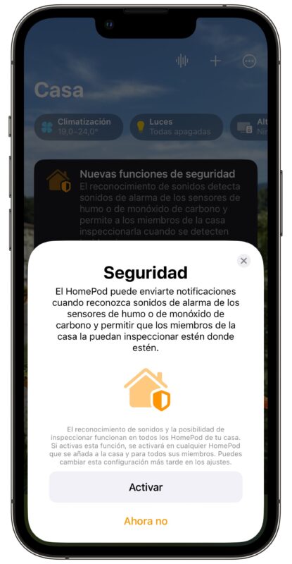 Algunas alarmas, especialmente las que ya están integradas en HomeKit, ya ofrecen este aviso automático, pero para las demás, esta función del HomePod nos permite recibir alertas inmediatas en caso de que se detecte humo o monóxido de carbono. Con un solo ajuste, convertimos una alarma tradicional en una inteligente.