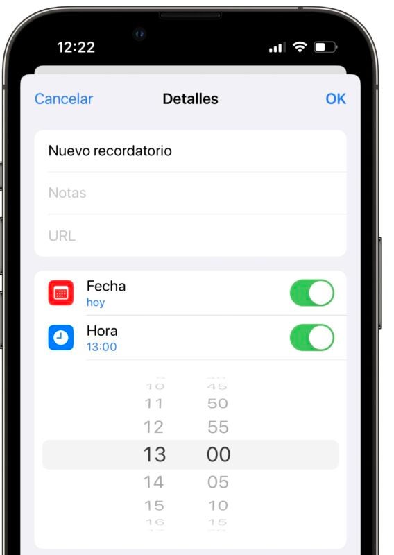 - Activar los recordatorios para hoy: al programar un recordatorio para todo el día el aviso llega en forma de Notificaciones de hoy. Estas son unas que podemos activar en la app Ajustes, entrando en Recordatorios. Aquí podemos, además, definir a que Hora queremos recibirlas.