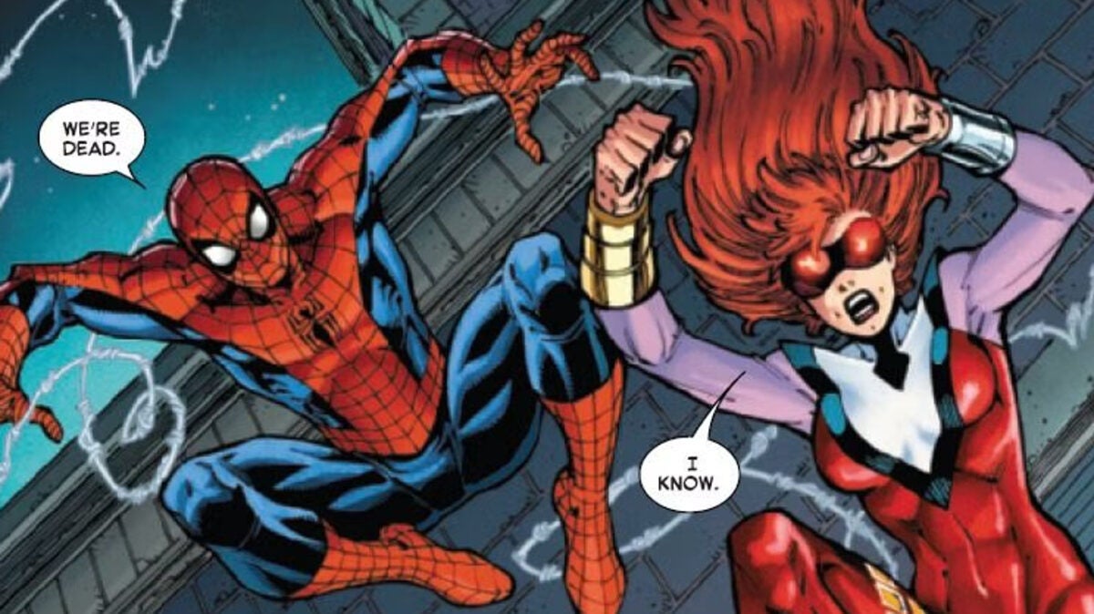 Wells ha acabado en el número 60 sin dejar marca, más allá de un absoluto desastre que tardarán años en maquillar y cambiar desde Marvel. En este último estertor -ojo: spoilers a partir de ahora– hemos asistido a una lucha conjunta de Spider-man y Jackpot (que es Mary Jane Watson con poderes), que deberían haber asistido a una cita doble: MJ con Paul y Peter con su nueva novia, Shay Marken, que todos sabemos que es un personaje simplemente provisional.