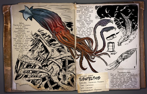 Y ahora viajemos al fondo marino para presentarte al Tusoteuthis. Aquí tienes su entrada en el diario de ARK: Survival Evolved: