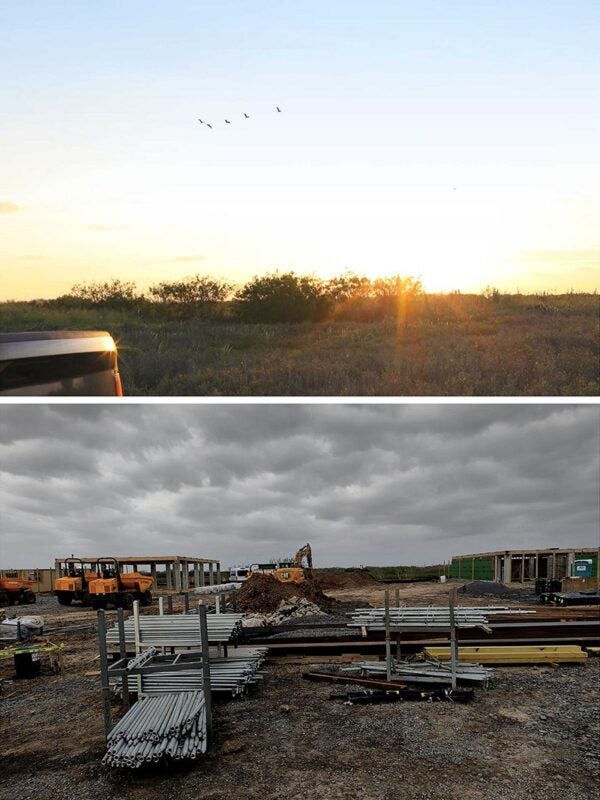 Antes de la llegada de SpaceX, la tierra estaba en su estado natural, “donde los caballos salvajes galopaban libremente a la luz de la luna de Texas”, según Cards Against Humanity. Las fotos incluidas en la demanda muestran cómo pasó el terreno de estar cubierto de vegetación a ser un área utilizada para la construcción.
