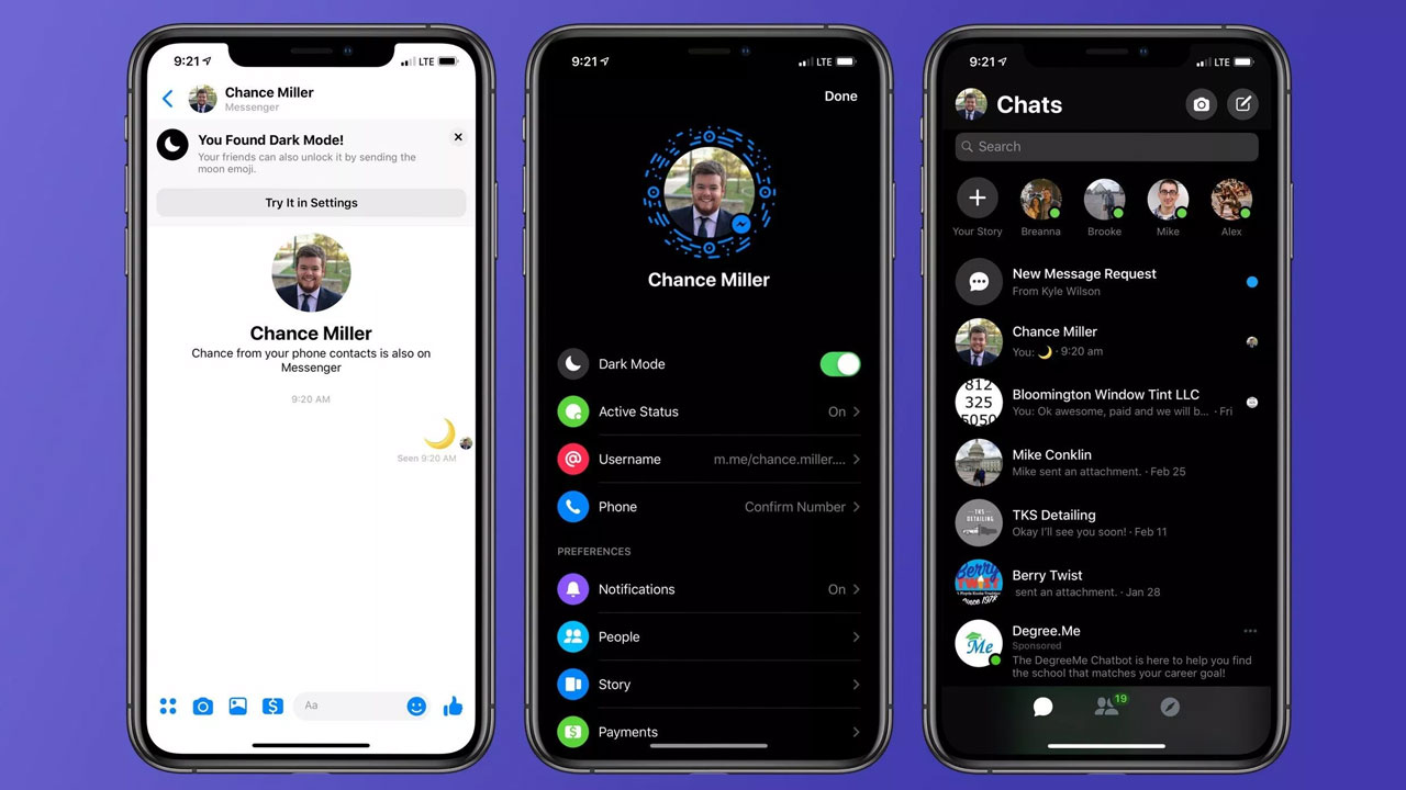 Para activarlo sólo es necesario entrar en Messenger, pinchar en tu foto de perfil (esquina superior izquierda) y fijarse en una de las primeras opciones que aparece: “Modo oscuro“. Dentro de esta casilla encontrarás tres modos: “Activado”, “Desactivado” y “Usar la configuración del sistema”. Si lo tienes habilitado por sistema operativo, te aparecerá esta última; ahora bien, si tu firmware no lo permite, pincha en “Activado” y listo.