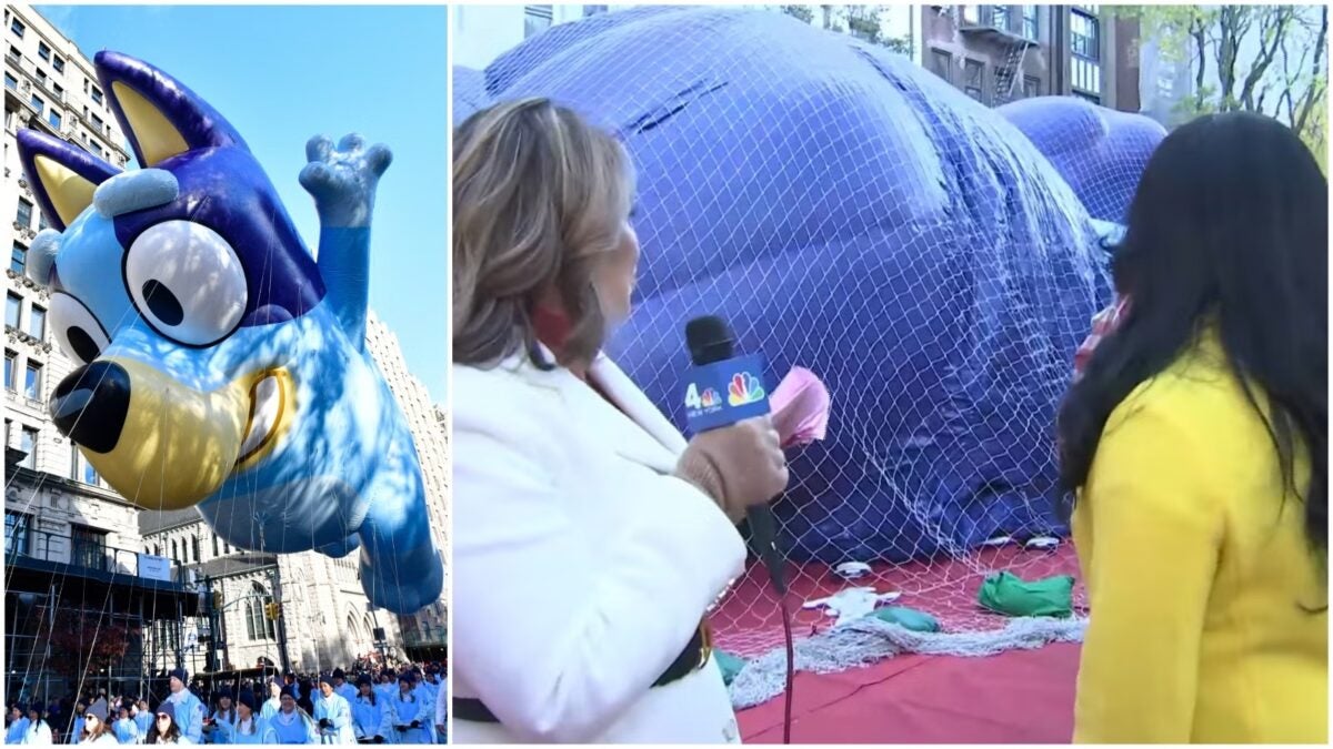 La cosa es que en el desfile de Macy’s de Acción de Gracias de este año (o más bien en su versión previa), Bluey ha estado a punto de causar una tragedia. Para los que no sois de Estados Unidos, hay que aclarar que el famoso desfile con muñecos inflables gigantes que ha aparecido en mil y un series y películas se ensaya antes para evitar errores de cualquier tipo. Errores como el que ha ocurrido en directo, durante una retransmisión de la NBC.