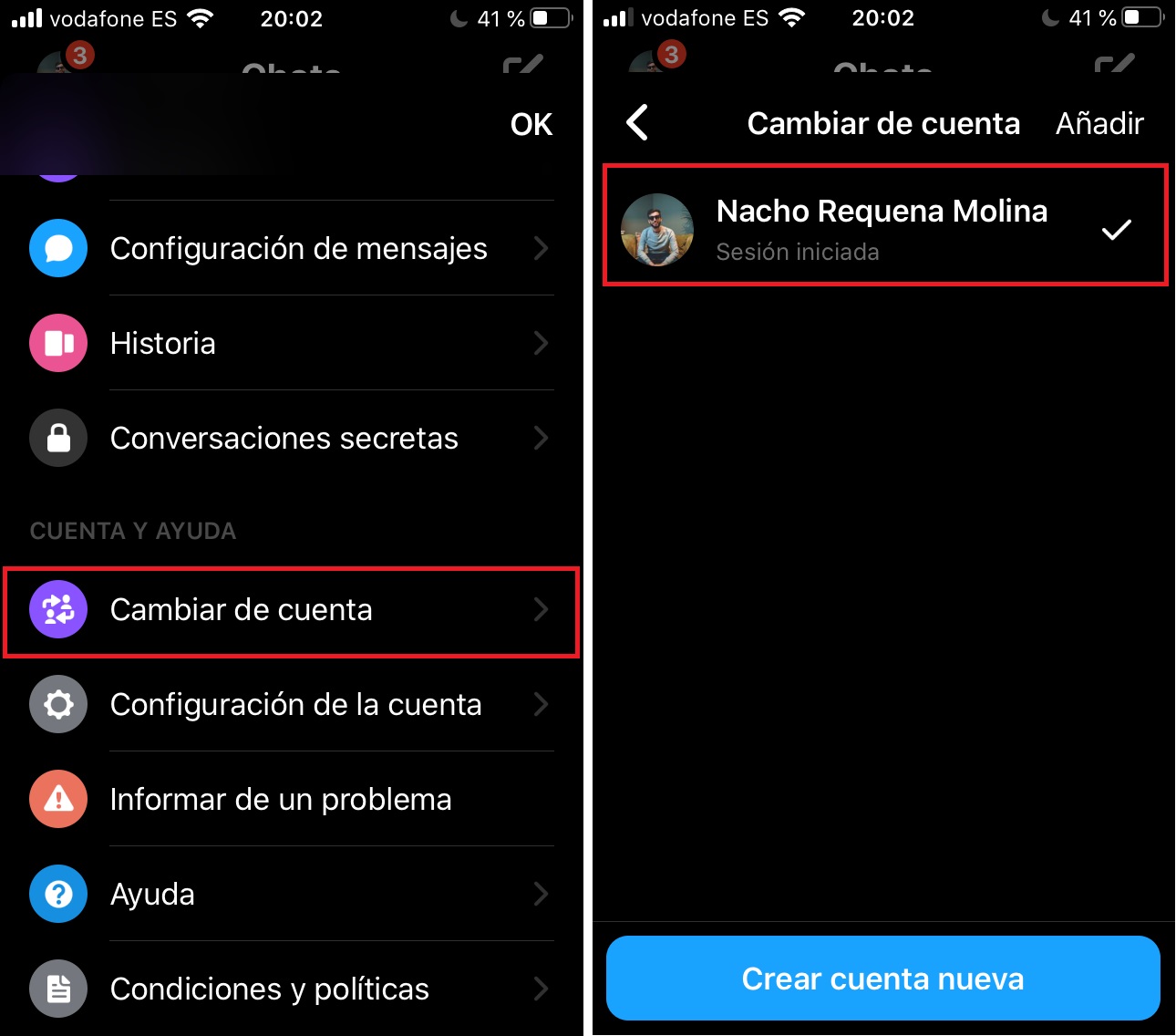 Cambiar de cuenta