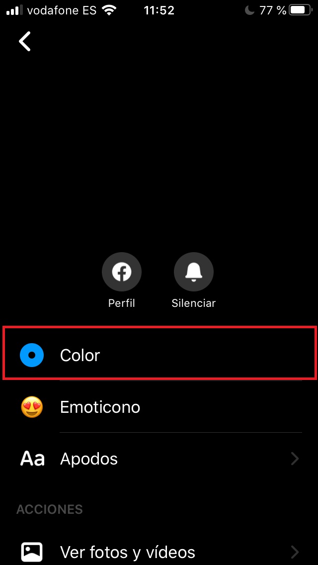 Si tu smartphone por un casual no te deja activar el modo noche en ninguna de las opciones anteriores (porque te da error o problema en general, que puede ocurrir), siempre puedes cambiarle el color a la conversación.