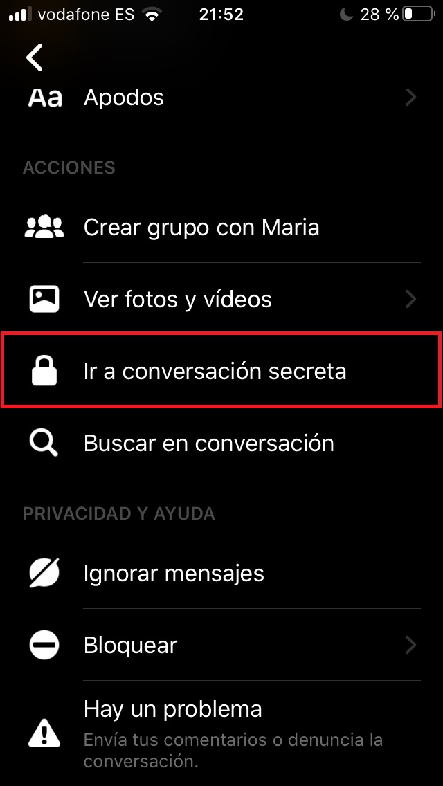 Activar conversación secreta