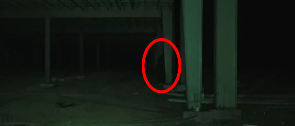 En el minuto 08:00 aproximadamente, ni Turner ni su amigo se dan cuenta de que graban la aparición de una persona que aparece detrás de una de las columnas. Si te fijas bien podrás ver cómo la figura aparece y desaparece. No de forma misteriosa sino dando pasos hacia adelante y hacia atrás.