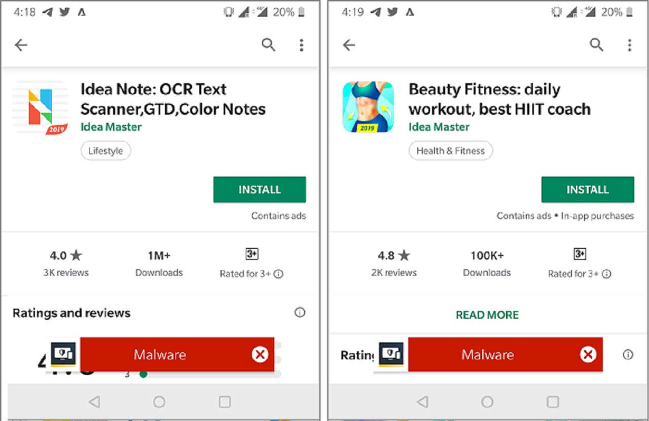 Estas aplicaciones nos espiaban e incumplían las normas de la tienda al efectuar clicks involuntarios para conseguir más visitas. Pero lo peor de todo es que estas dos apps que son Beauty Fitness e Idea Note además de llevar un año en la tienda y espiarnos tenían más de 1,5 millones de descargas.